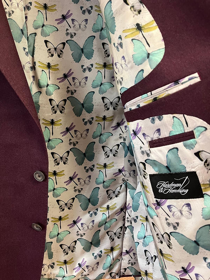 We found cloths that reflected a more playful style whilst remaining professional and added linings to bring a more fun slant to the garments, settling on a blue 3 piece suit, grey trousers and a more burgundy toned sports jacket and then threw a shirt in to the mix as well.