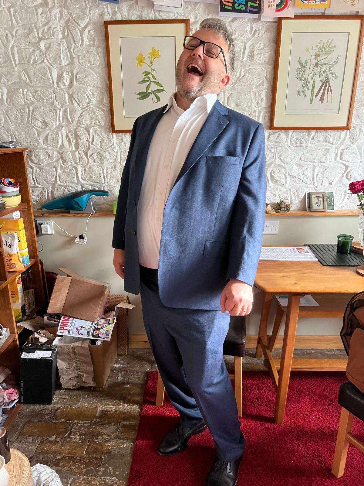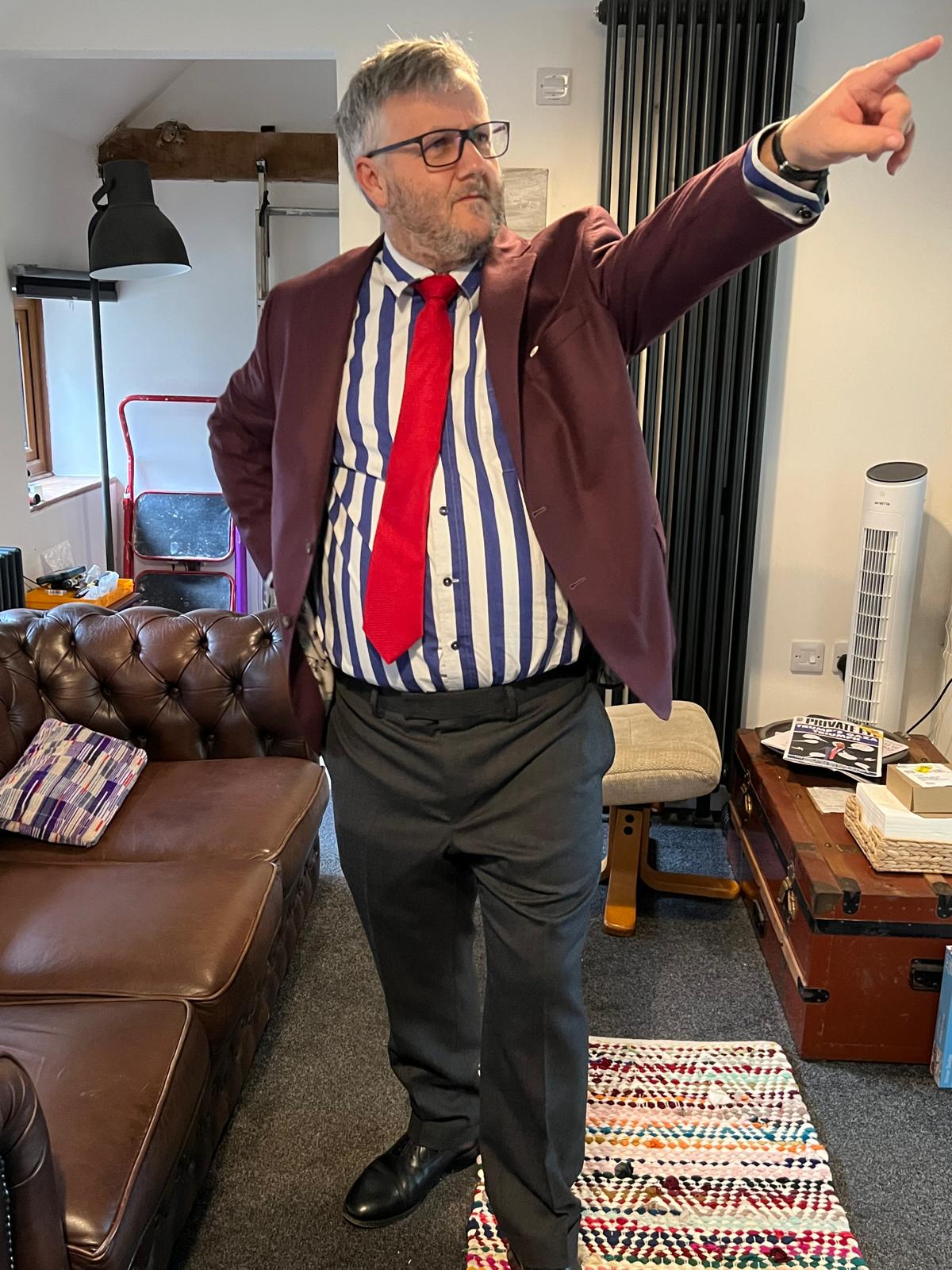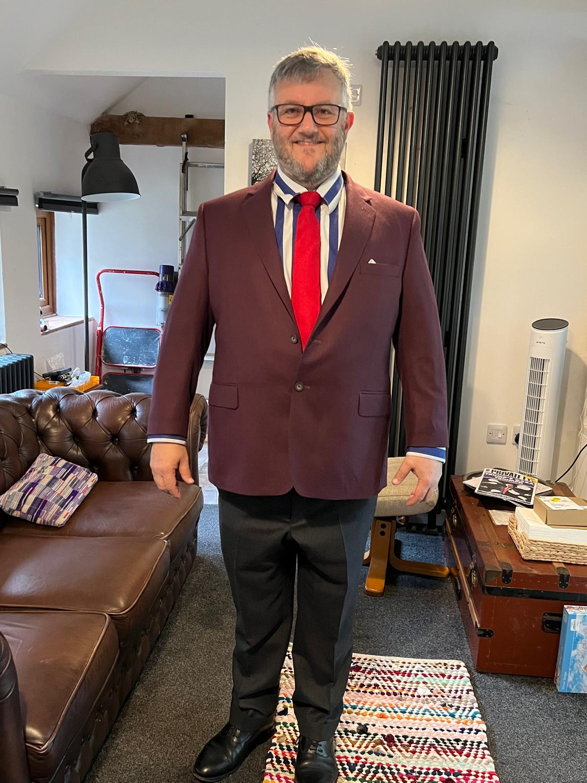 We found cloths that reflected a more playful style whilst remaining professional and added linings to bring a more fun slant to the garments, settling on a blue 3 piece suit, grey trousers and a more burgundy toned sports jacket and then threw a shirt in to the mix as well.